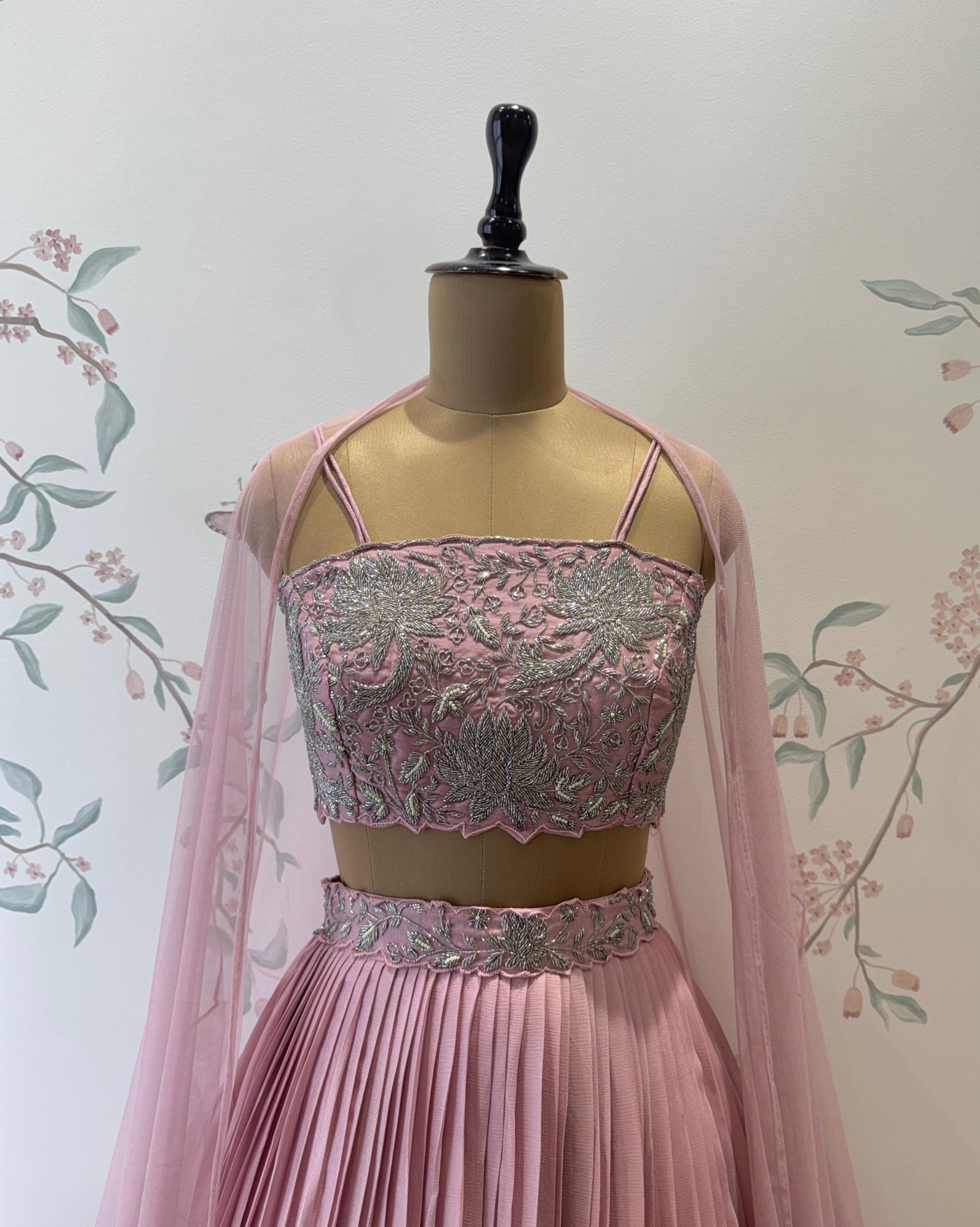 Dusty rose croptop with a slight hint of lilac, perfect for festive or semi-formal occasions.