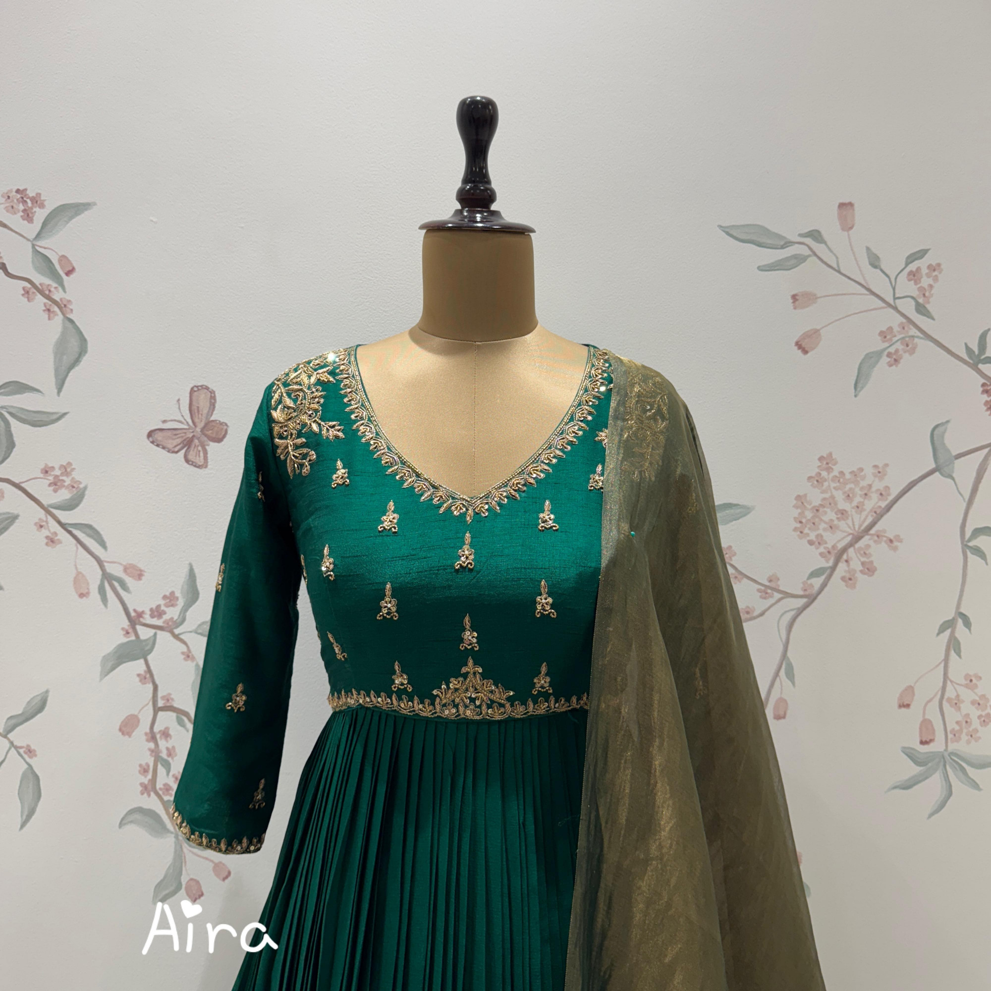 Yoke : Soft Raw Silk Flare : Chiffon Dupatta :Tissue Banaras
